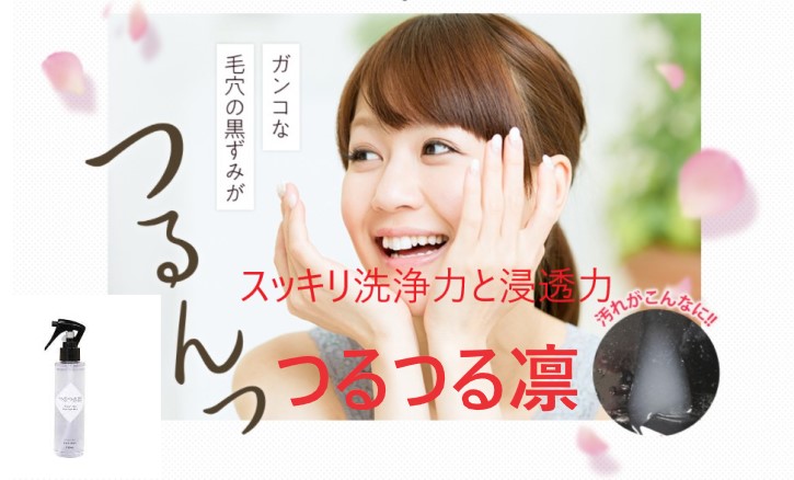 「つるつる凛」 は、毛穴の黒ずみ除去に特化したミストです。汚れた毛穴をきれいにして、開いて閉まった毛穴をキュっと引き締める効果があります。