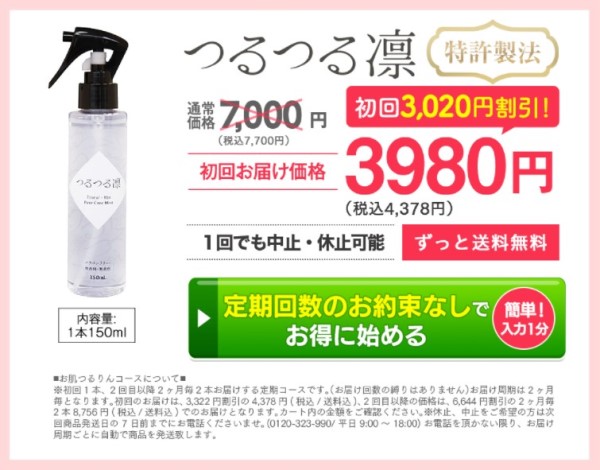 @「お肌つるりん定期コース」(初回1本で通常価格7,700円(税込))