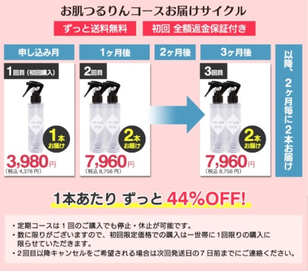 公式サイトでは、@「お肌つるりん定期コース」A「全身つるりん定期コース」の2つの徳定期コースが用意されています。